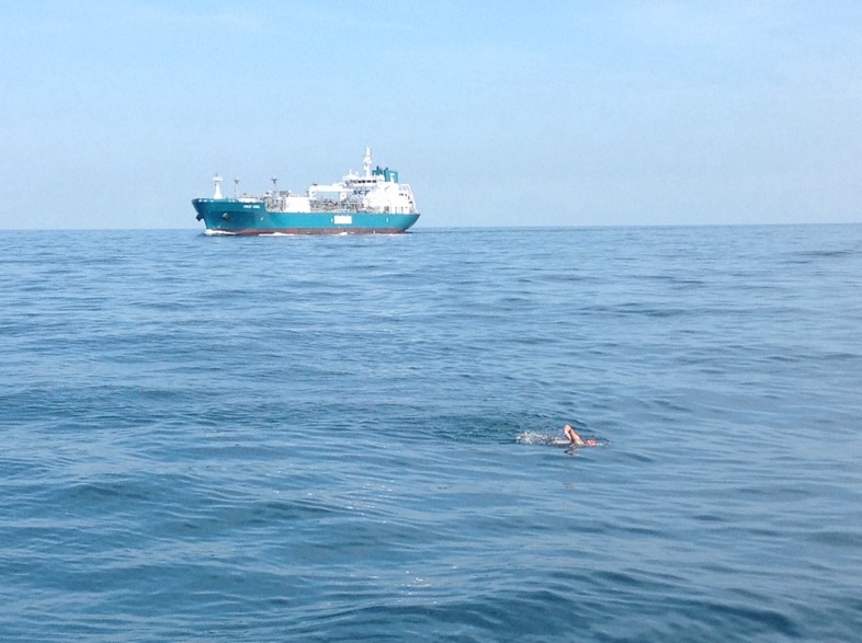 …knapp in der Hälfte. Jürg fühlt sich wohl, und seine Armzüge sind gut und regelmässig.