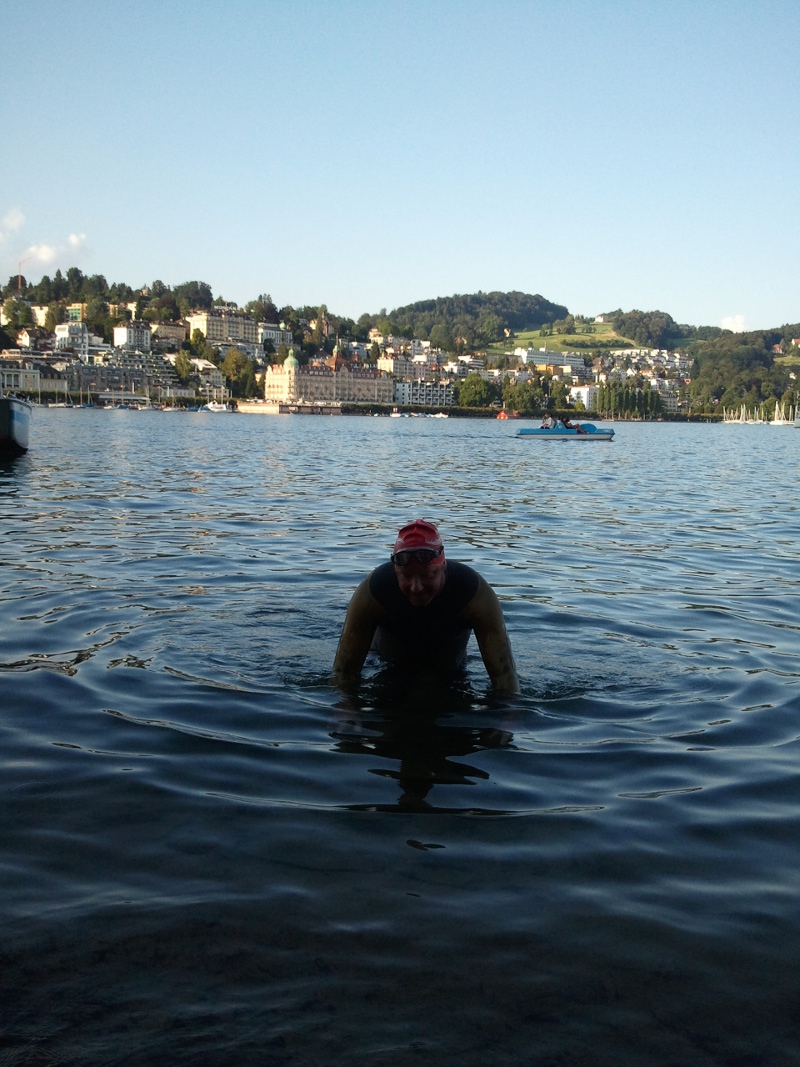Um 1900 Uhr ist es vollbracht – Jürg hat den Vierwaldstättersee durchschwommen!