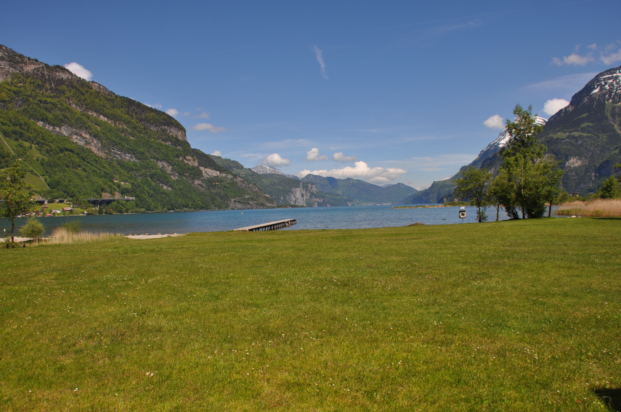 Unser Start Ort am 10. August 2013, Seerestaurant Seedorf mit Stegund die Sonne lacht.